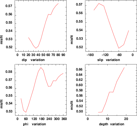 | strike | dip | rake | seismic moment | |