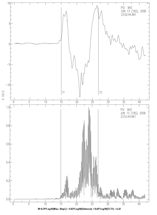 Estimated magnitude M=6.9 based on the formula of Hara T., 2007