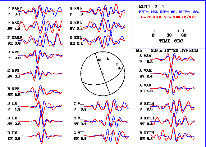 Source parameters determination of the selected event