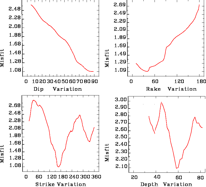 Error Estimation of Strike, Dip, Rake and Focal Depth