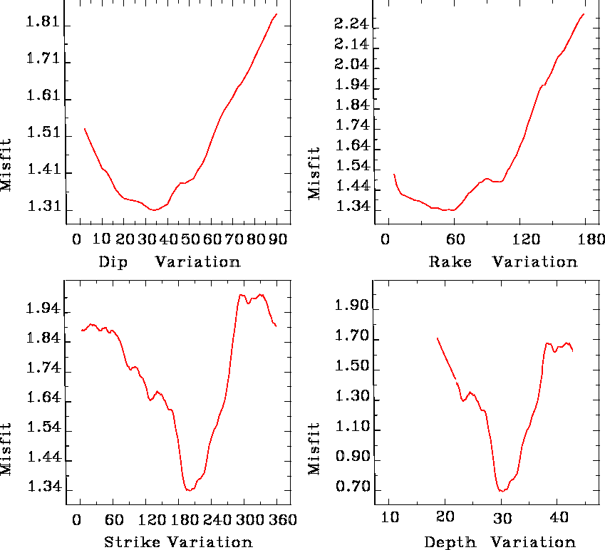 Error Estimation of Strike, Dip, Rake and Focal Depth