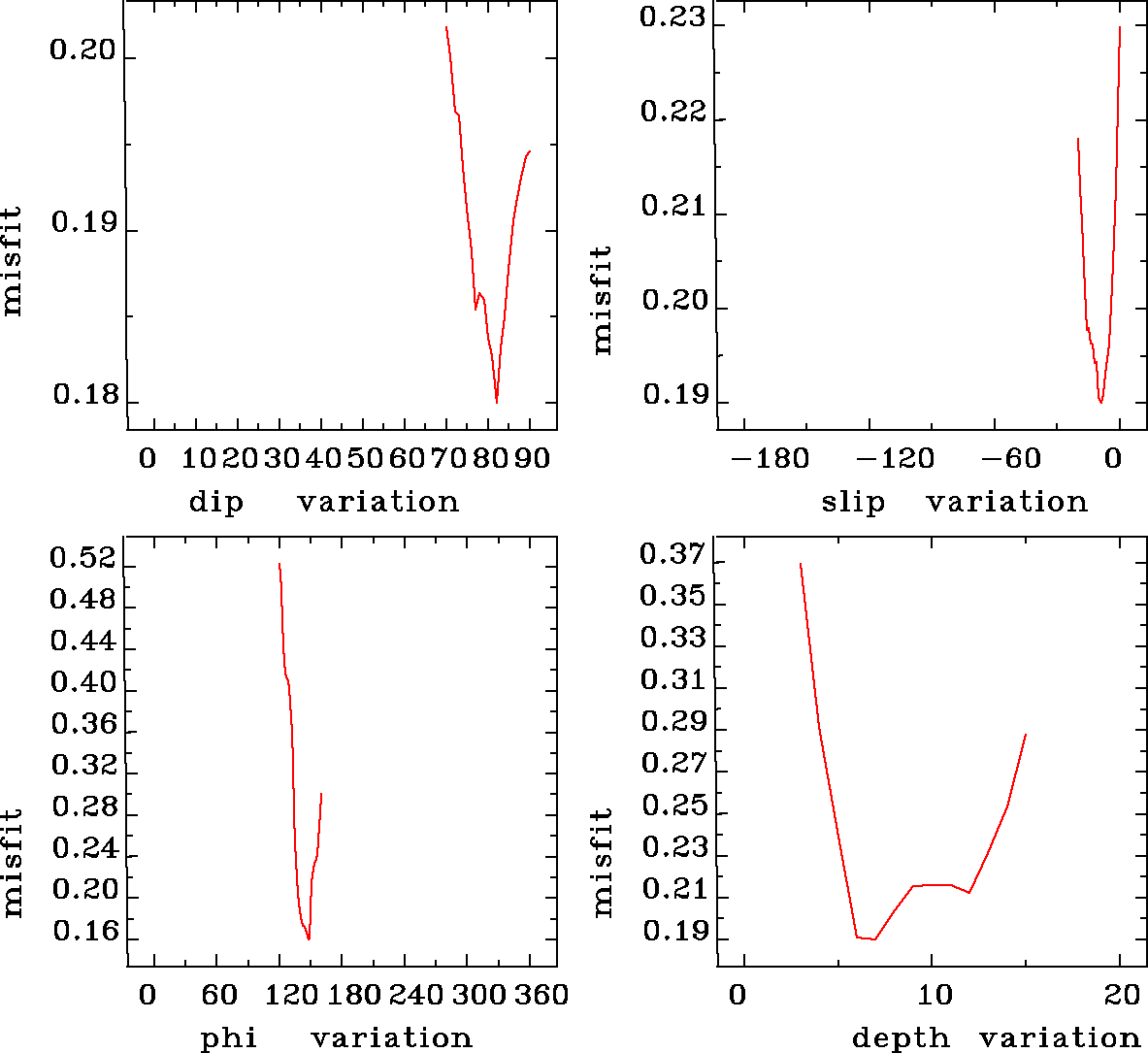 | strike | dip | rake | seismic moment | |