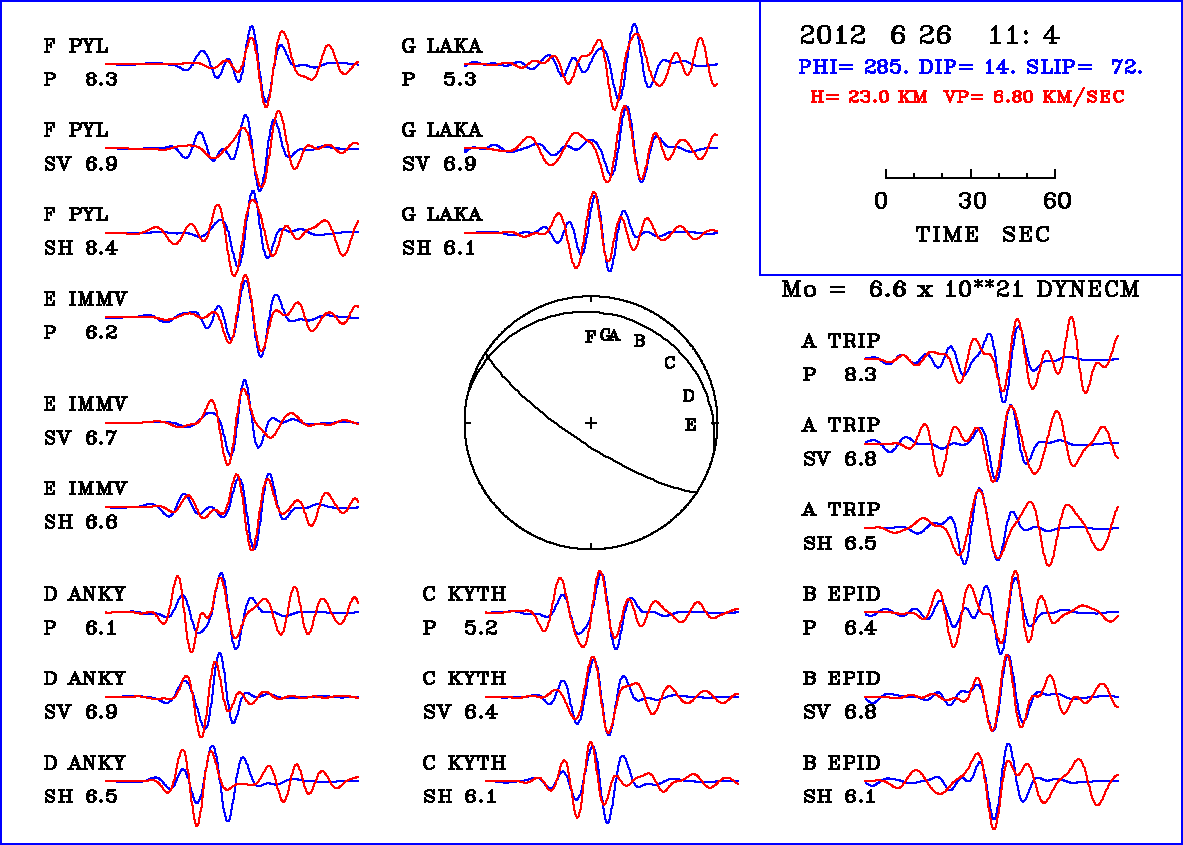 | strike | dip | rake | seismic moment | |