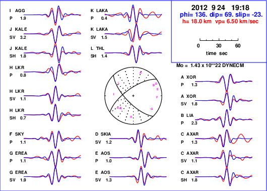 | strike | dip | rake | seismic moment | |