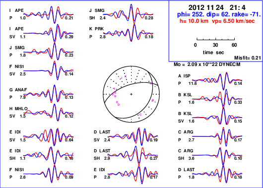 | strike | dip | rake | seismic moment | |
