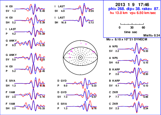 | strike | dip | rake | seismic moment | |