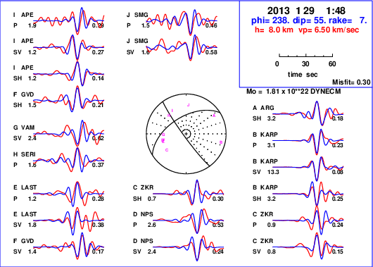 | strike | dip | rake | seismic moment | |