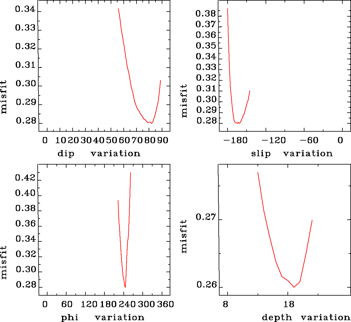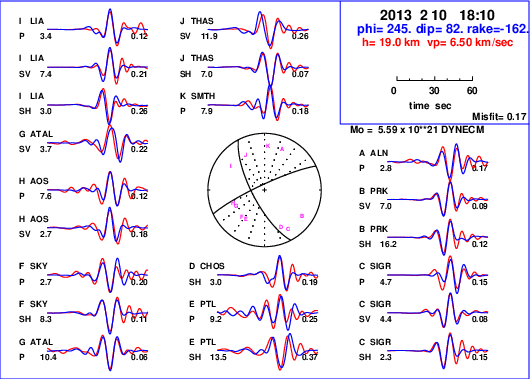 | strike | dip | rake | seismic moment | |