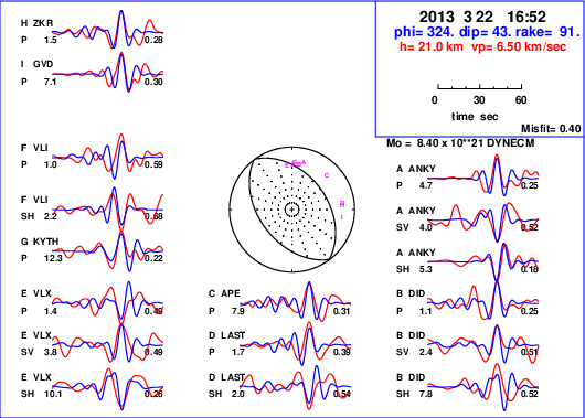 | strike | dip | rake | seismic moment | |