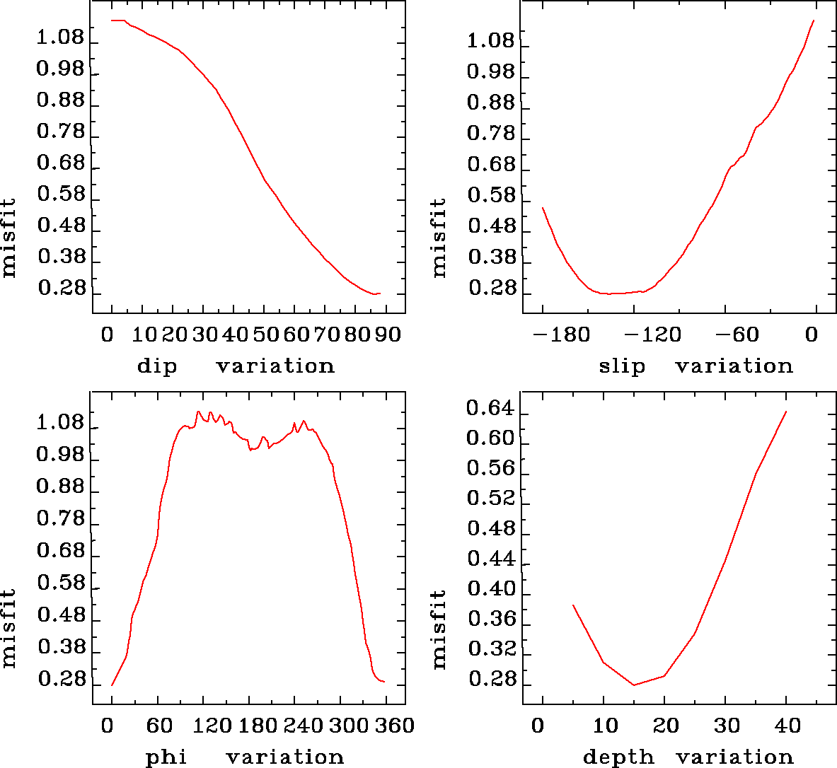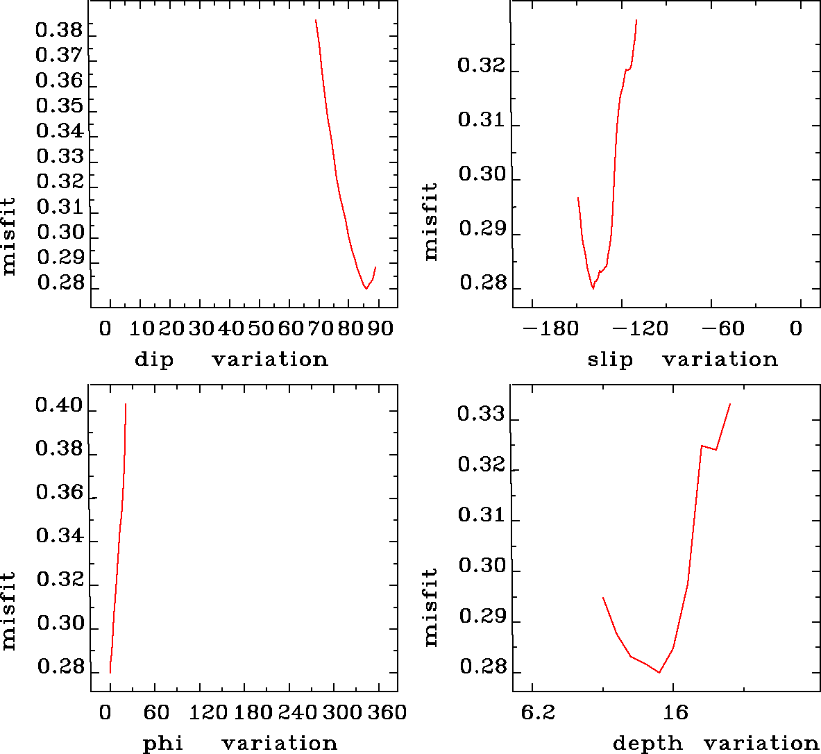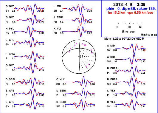 | strike | dip | rake | seismic moment | |