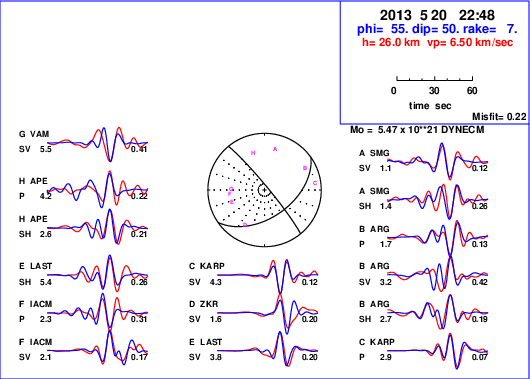 | strike | dip | rake | seismic moment | |