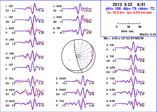 | strike | dip | rake | seismic moment | |