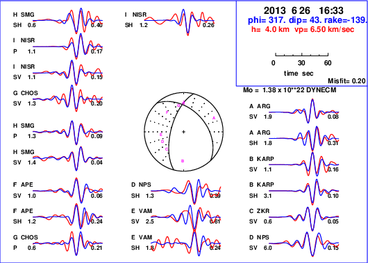 | strike | dip | rake | seismic moment | |
