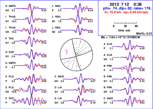 | strike | dip | rake | seismic moment | |