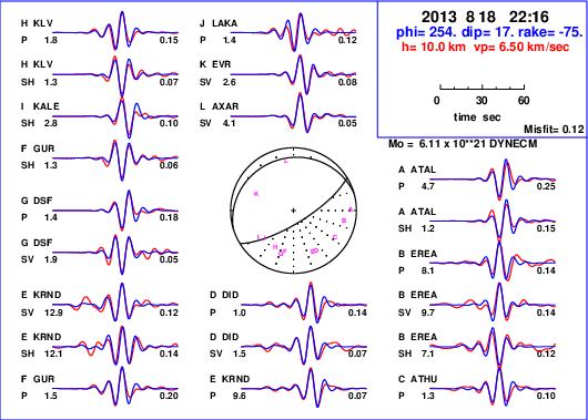 | strike | dip | rake | seismic moment | |