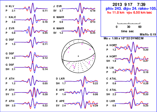 | strike | dip | rake | seismic moment | |