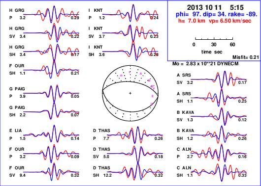 | strike | dip | rake | seismic moment | |
