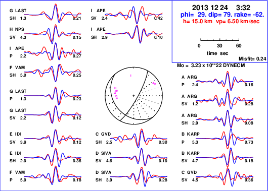 | strike | dip | rake | seismic moment | |