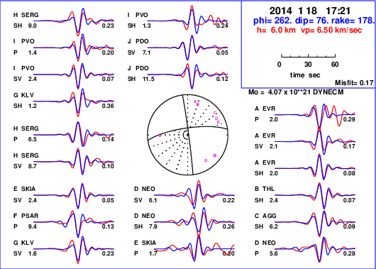 | strike | dip | rake | seismic moment | |