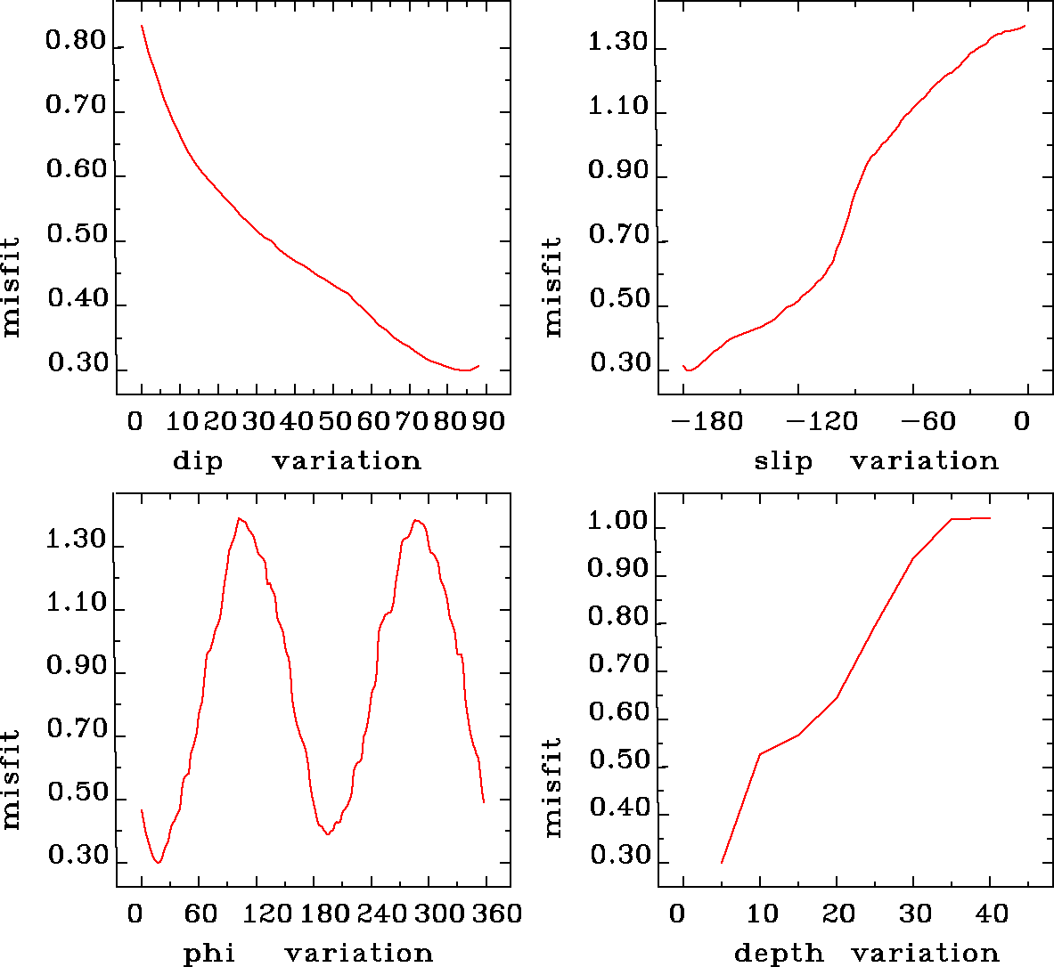 | strike | dip | rake | seismic moment | |