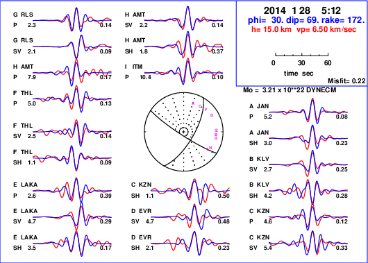 | strike | dip | rake | seismic moment | |