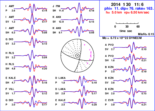| strike | dip | rake | seismic moment | |
