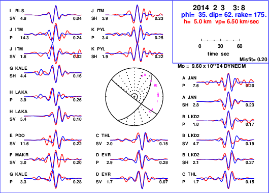 | strike | dip | rake | seismic moment | |