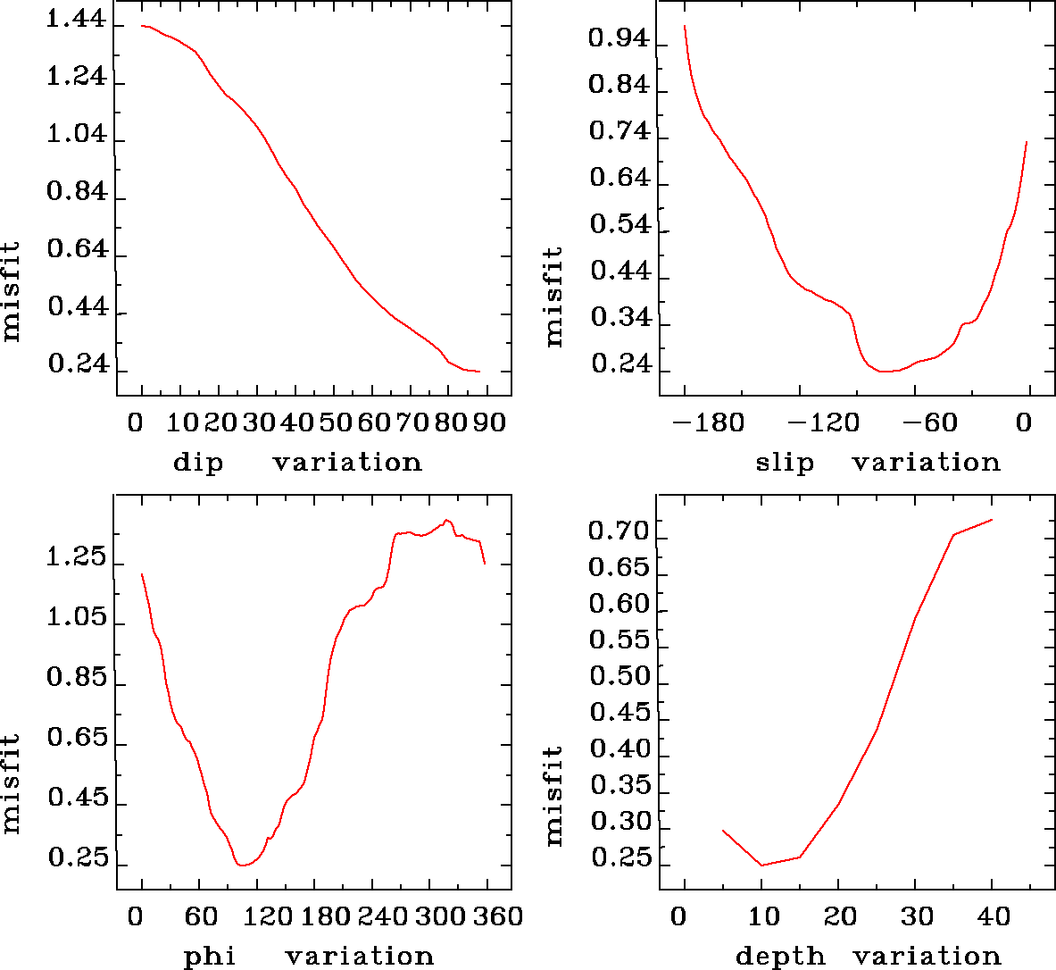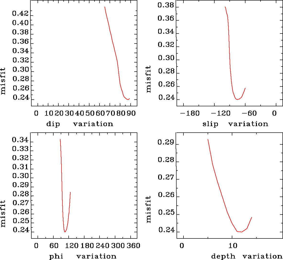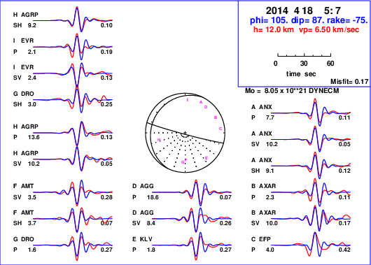 | strike | dip | rake | seismic moment | |