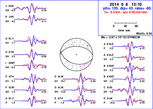 | strike | dip | rake | seismic moment | |