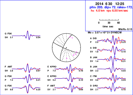 | strike | dip | rake | seismic moment | |