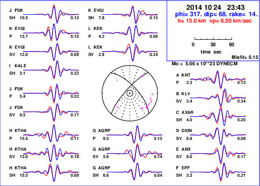 | strike | dip | rake | seismic moment | |