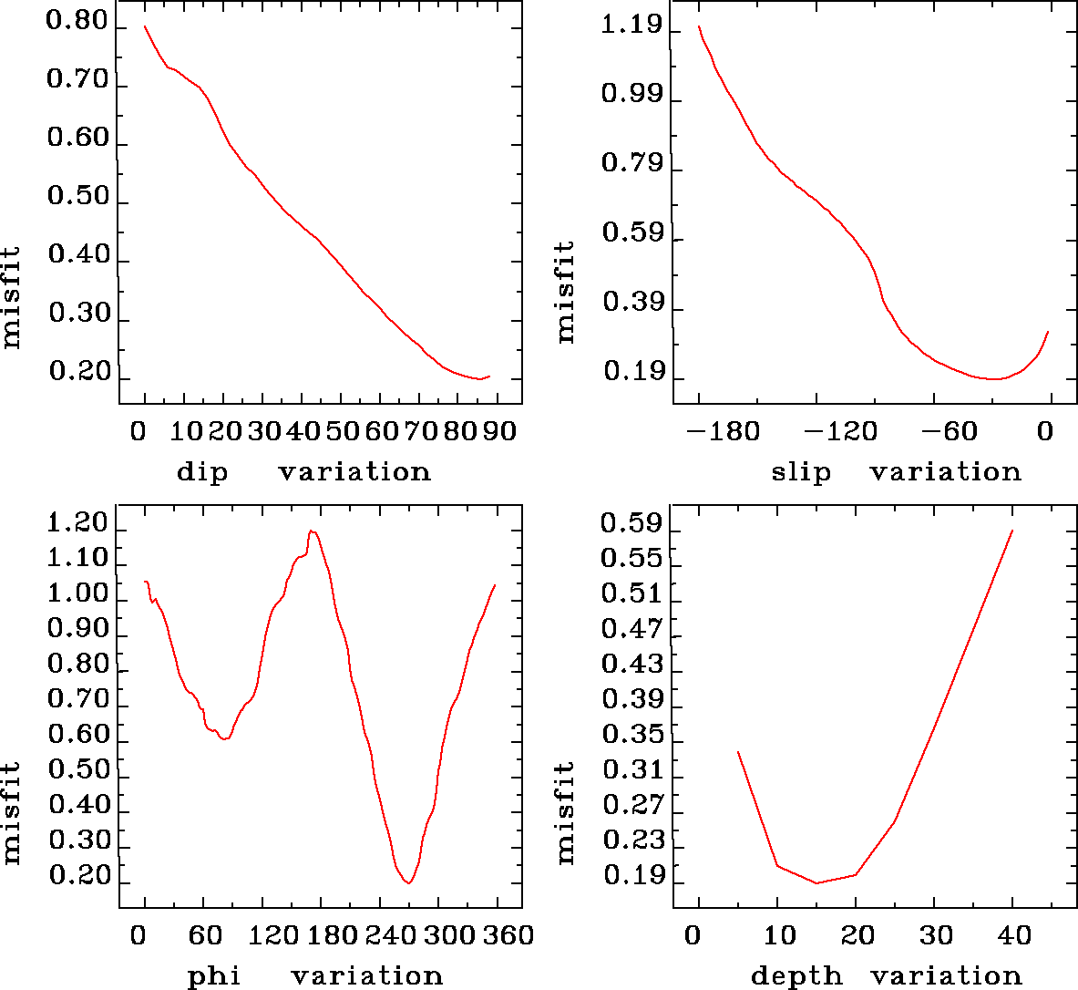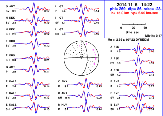 | strike | dip | rake | seismic moment | |