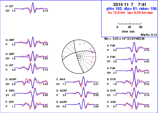 | strike | dip | rake | seismic moment | |