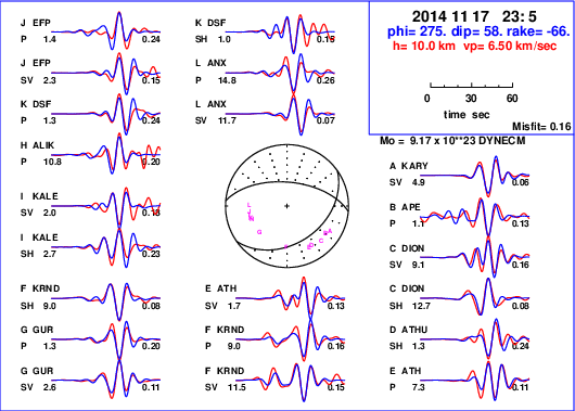 | strike | dip | rake | seismic moment | |