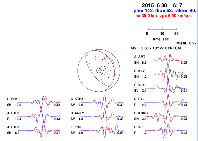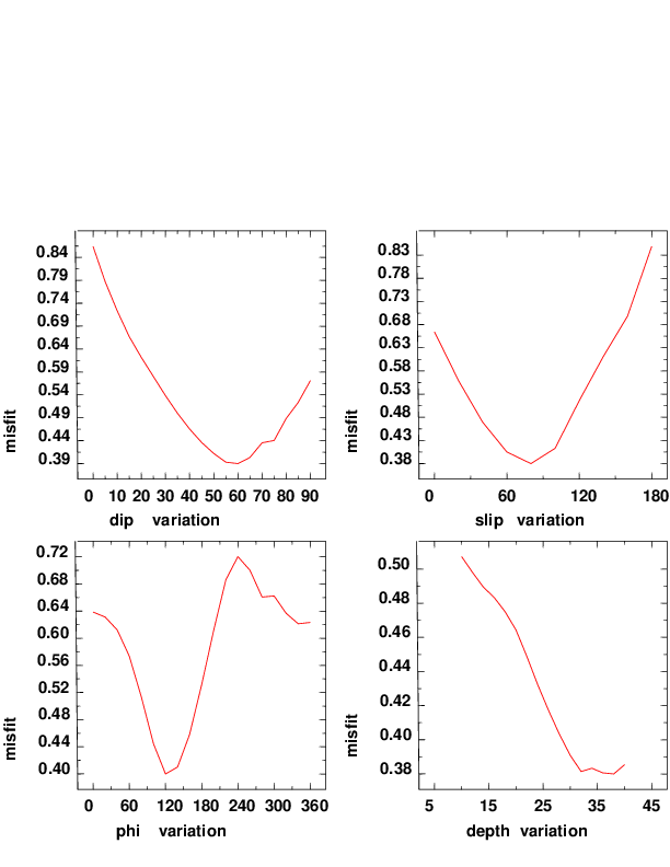 | strike | dip | rake | seismic moment | |