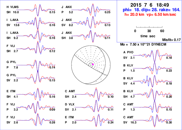 | strike | dip | rake | seismic moment | |