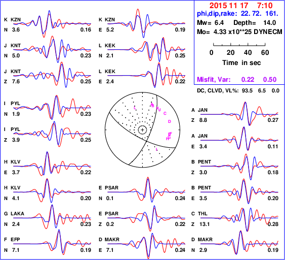 | strike | dip | rake | seismic moment | |