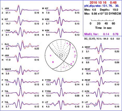 | strike | dip | rake | seismic moment | |