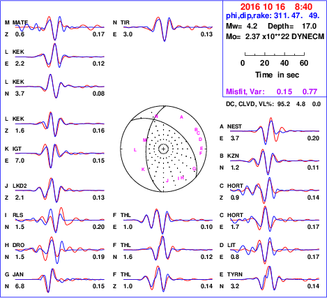 | strike | dip | rake | seismic moment | |