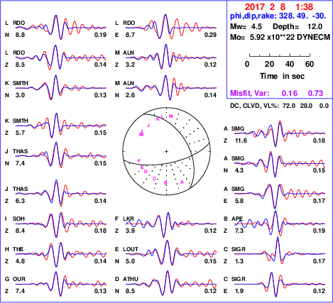 | strike | dip | rake | seismic moment | |