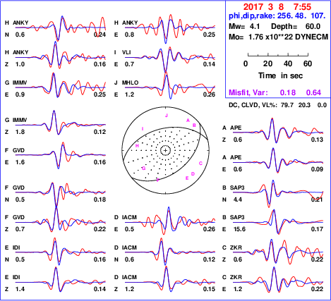 | strike | dip | rake | seismic moment | |