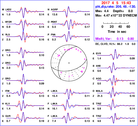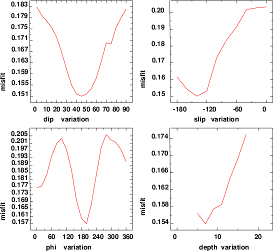 | strike | dip | rake | seismic moment | |