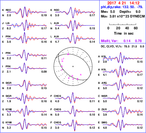 | strike | dip | rake | seismic moment | |