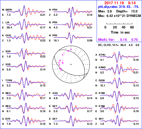 | strike | dip | rake | seismic moment | |