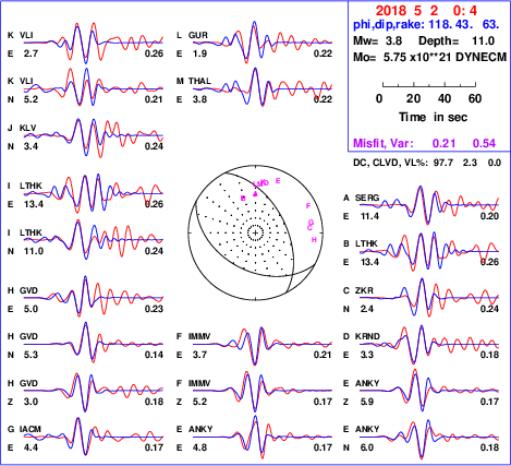 | strike | dip | rake | seismic moment | |