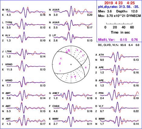 | strike | dip | rake | seismic moment | |