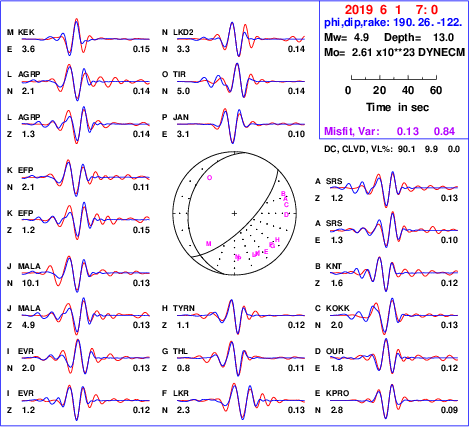 | strike | dip | rake | seismic moment | |