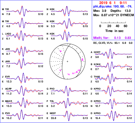 | strike | dip | rake | seismic moment | |