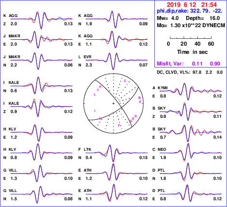 | strike | dip | rake | seismic moment | |