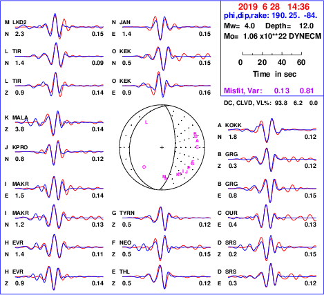 | strike | dip | rake | seismic moment | |